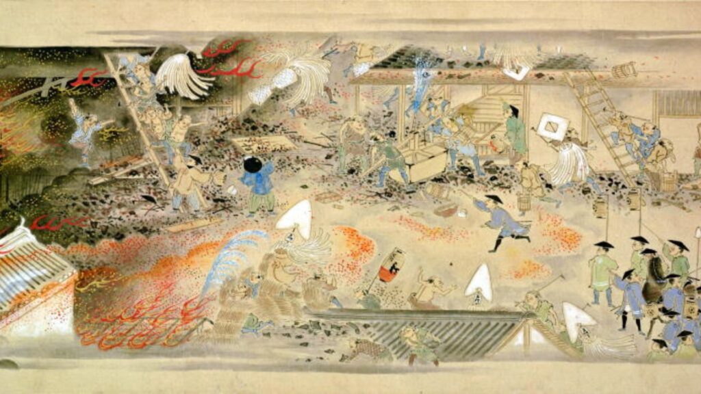 折からの強風に火は次々と燃え広がり、麻布、虎の門、日比谷門や和田倉門、江戸城の一部も焼き、日本橋、神田一帯、上野から千住辺りまで延焼、江戸八百八町のうちおよそ六百三十町を焼きつくしました。