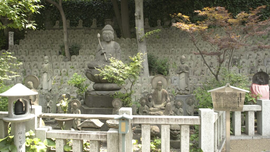 羅漢像の中には、聖母マリアを連想させる赤ん坊を抱いた女性の羅漢像もあり、また手にしている錫杖の鐶を掛ける部分が十字架の形をした羅漢像もあり、歴史的重要な文化財となっております。(都指定重要文化財・新東京百景指定)