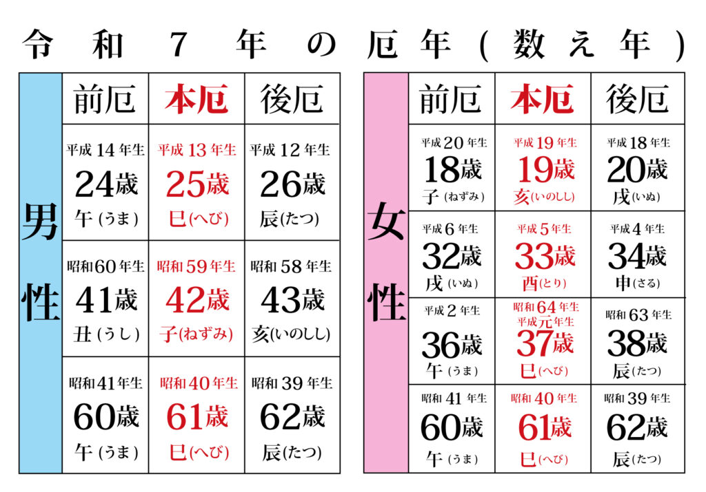 厄年というのは、人の一生の中でも大きな変化がある歳であり、肉体的・精神的・社会的に移り変わりが大きいと言われております。
