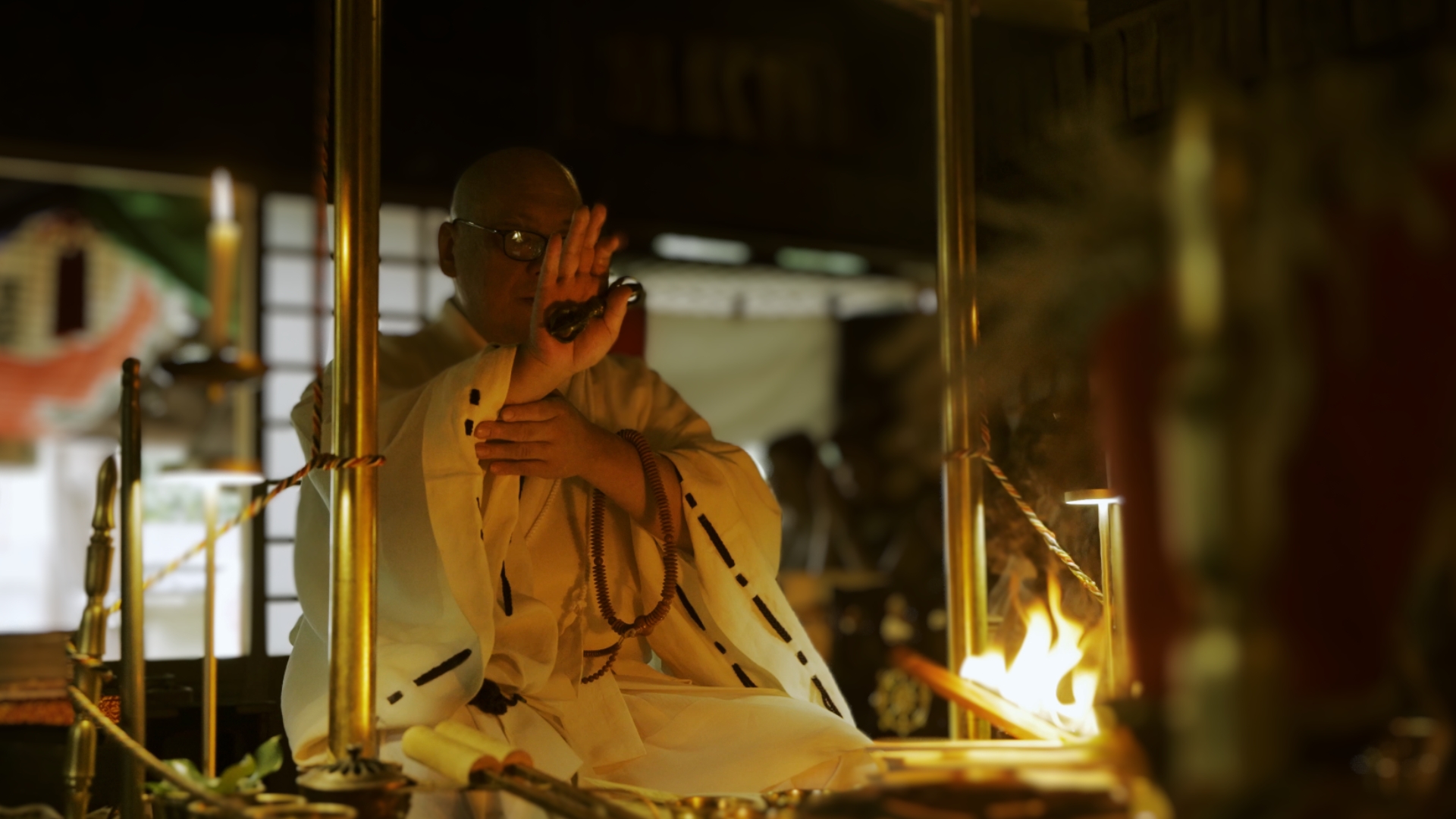 護摩を修行する行者が、密教で伝えられる秘法によって自身を浄め、そして様々な供物を以って供養を行い、お願い事を叶えてくださるよう、皆さまに代わって仏様に祈りを捧げます。
